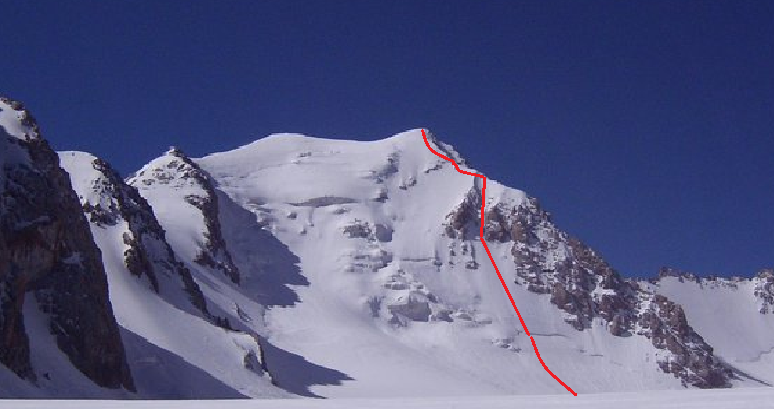 Finally we reach the glacier and our objective comes into view an elegant north-face that looks like the tour-ronde.