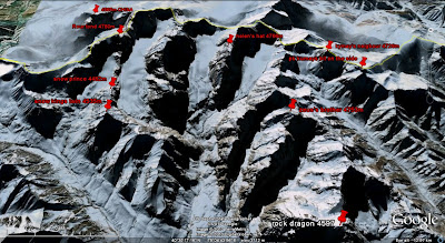 After several days spent trauling through expedition photo's and reports I have managed to come up with a list of 9 of the principle unclimbed summits that we may attempt in the 20ish days we will spend in the range.