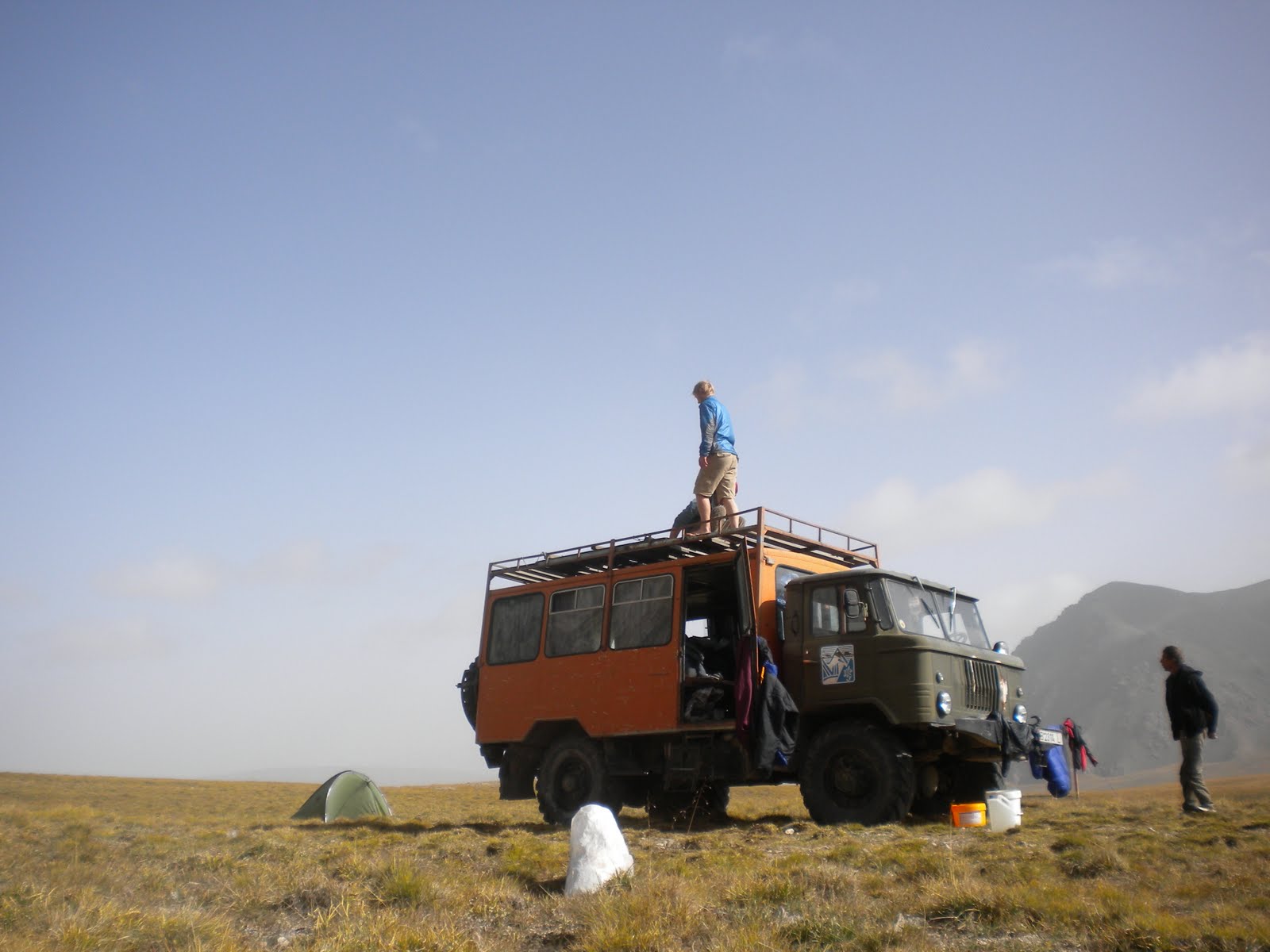 The 17.30 flight to Bishkek (the capital of Kyrgyzstan) was not as comfortable; excitement did not allow me to sleep. We arrived at 4am into the humid airport, and met our driver who was also the proud owner of Kyrgy’s smallest car. Crammed in we headed to our soviet apartment building. Morning revealed the humid Russian style streets; we got enough Som for a small house, and met with ITMC, our logistics provider for the trip. We then reccied Osh bazaar, Bishkek cheapest market; alien smells and sights surrounded us, the fruit and vegetables much bigger and juicer, compared with that found in Europe. We came across a stall selling small black pellets, the vendor motioned us to try some, following his lead we each put some of the unknown substance on our gums, I instantly recognised it as snuff, it was quite hysterical. The next day was spent purchasing supplies and the evening soaking up the culture (I got perhaps a little too much culture). We were up early to pack our immense ex-USSR military vehicle (this thing would make Bear Grylls driving a defender look like Elton John in a Fiesta......no offence Elton.)
